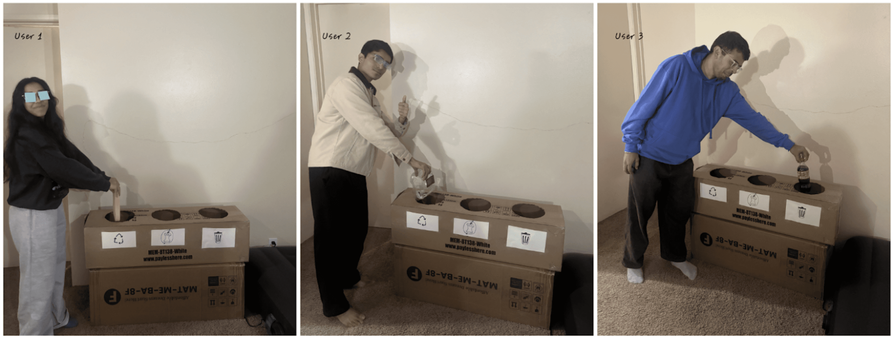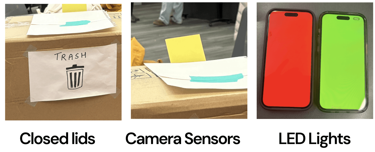 Created a mock 3-bin setup with different signage styles and tested it under vision-limited simulations.