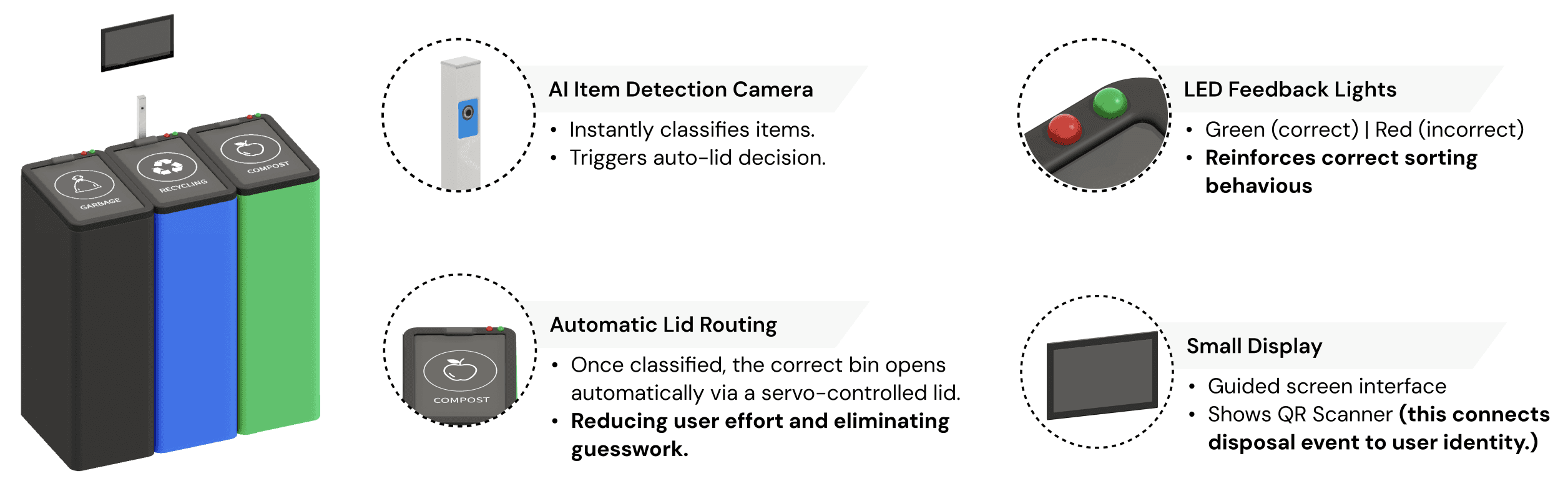 Some bins auto-sort, but don’t reinforce user learning or behavior change.